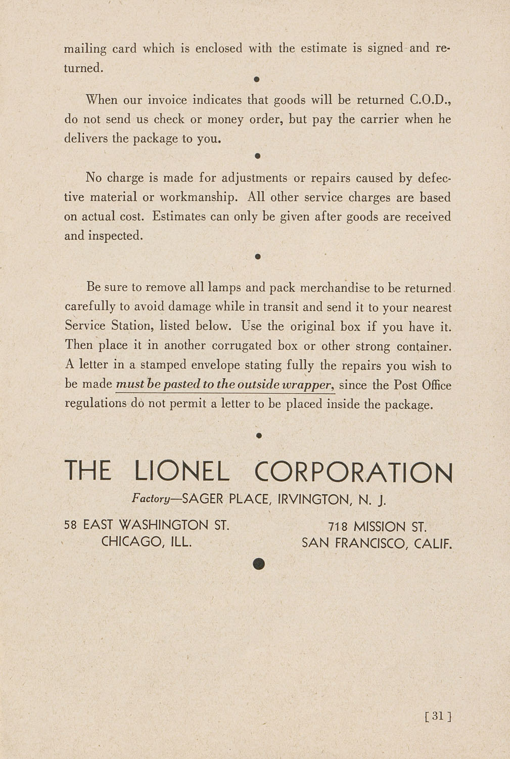 Lionel Instructions for Assembling and Operating