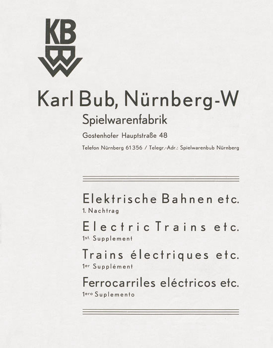Karl Bub Spielwarenfabrik Nürnberg Katalog 1933