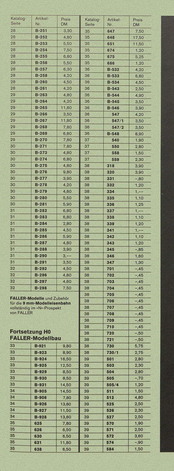 Faller-Preisliste 1971