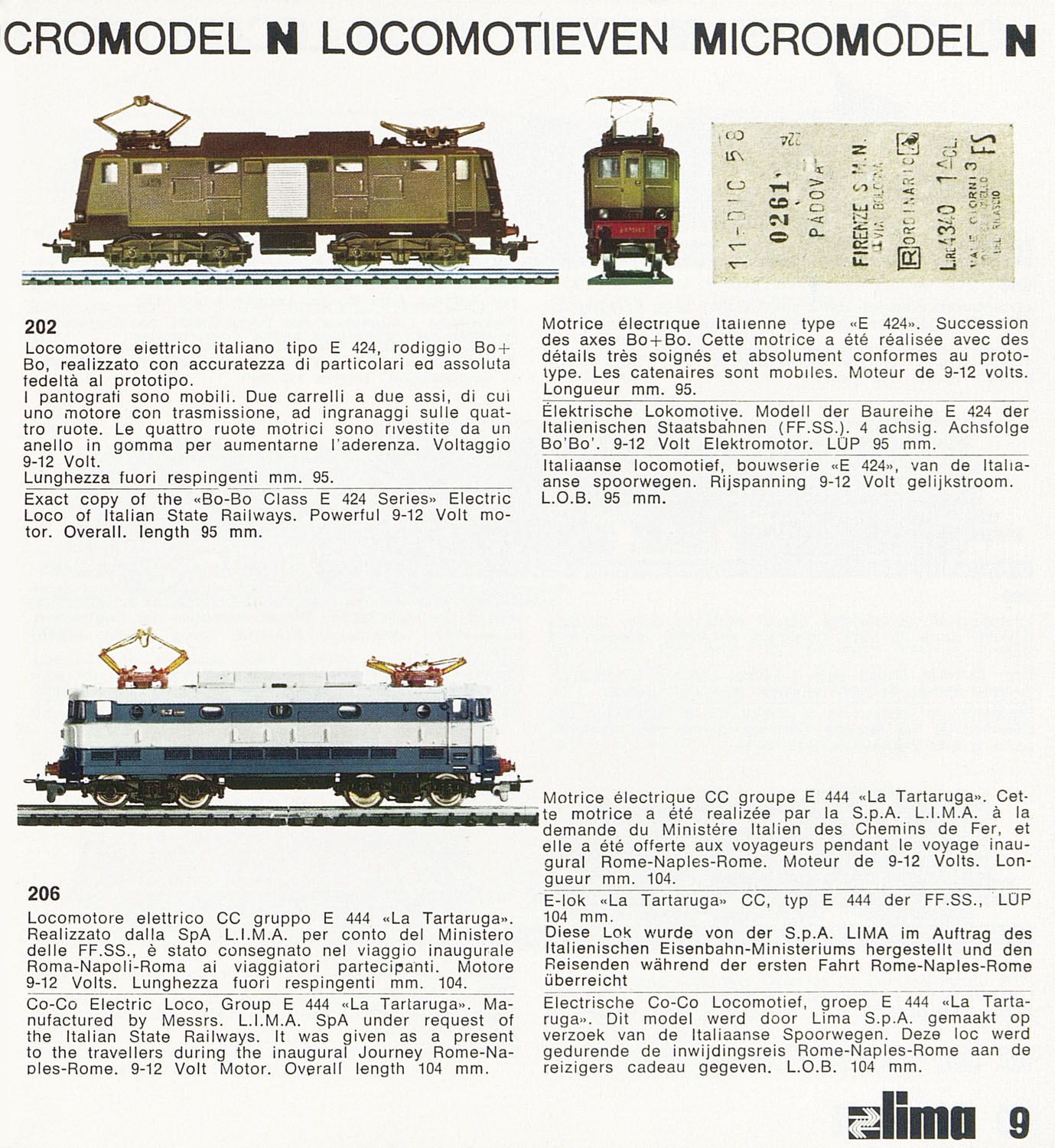 Lima Catalogo dei Treni elettrici in Miniatura Micro Model N