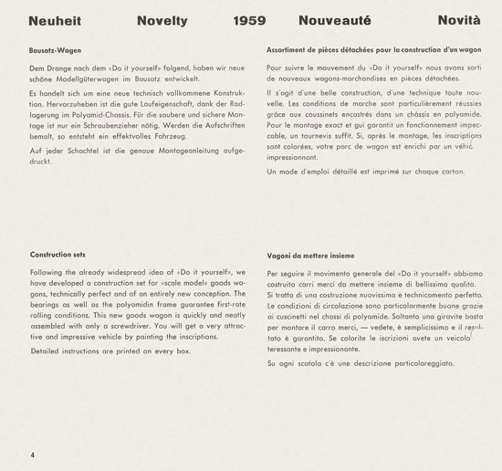 Wesa - Schweizer elektrische Modelleisenbahn Spur 13 mm - Katalog aus dem Jahr 1959