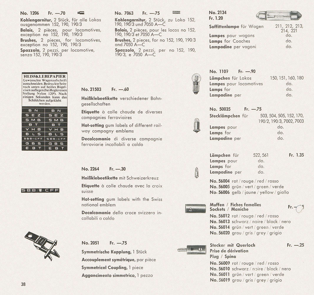 Wesa Schweizer elektrische Modelleisenbahn Spur 13 mm Katalog 1959
