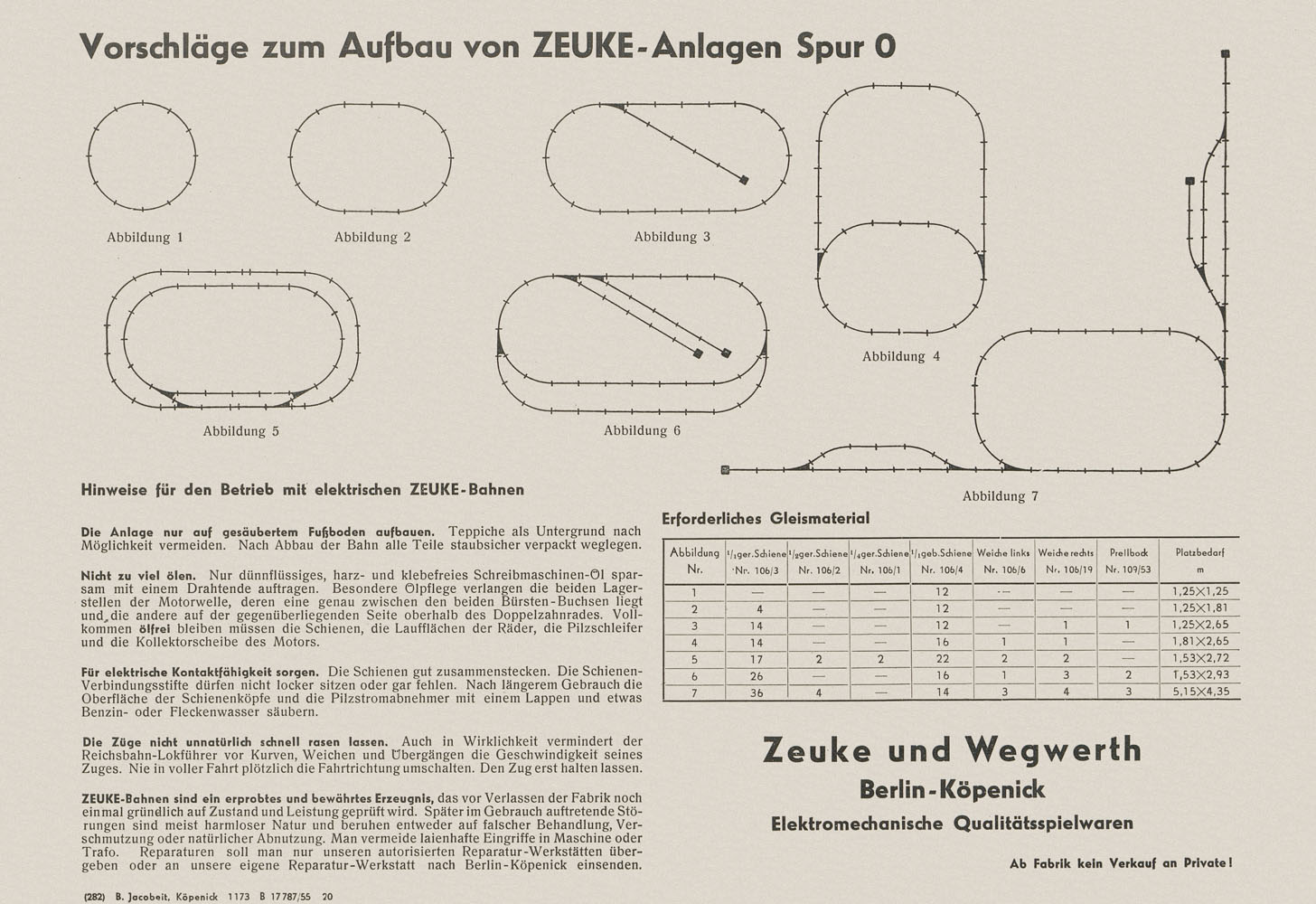 Zeuke-Bahnen Spur 0 Katalog 1955